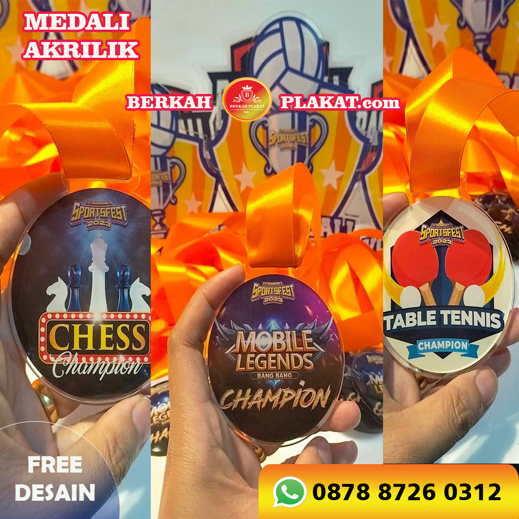 Medali adalah pilihan inovatif untuk penghargaan dengan desain yang modern dan eksklusif. Terbuat dari akrilik berkualitas tinggi, medali ini memiliki tampilan transparan atau berwarna dengan berbagai teknik finishing seperti cetak UV, grafir, atau kombinasi warna. Cocok untuk event olahraga, penghargaan akademik, dan kompetisi lainnya.